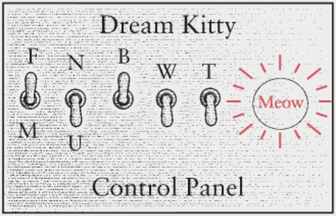 Hãy tạo một bảng điều khiển chọn mèo ngay nào. Bảng điều khiển đơn giản chỉ gồm năm công tắc (giống với công tắc tắt/mở trên tường nhà bạn để điều khiển đèn) với một bóng đèn gắn trên một tấm bảng.
