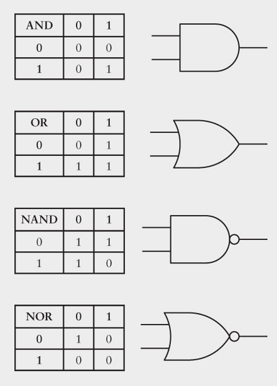 Về cốt lõi, máy tính là tổng hợp của đại số Boolean và điện. Thành phần trọng yếu đã hợp nhất hỗn hợp của toán và phần cứng này lại là cổng logic. Nó không khác gì với những cái cổng thân thuộc để nước và người đi qua. Cổng logic thực hiện những phép toán đơn giản trong logic Boolean bằng cách chặn hay cho dòng điện đi qua.