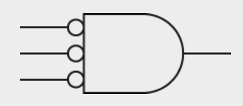Chú ý các chấm tròn nhỏ ở input của cổng AND. Chúng có nghĩa là tín hiệu bị đảo tại vị trí đó - 0 (không điện áp) thì thành 1 (có điện áp) và ngược lại.