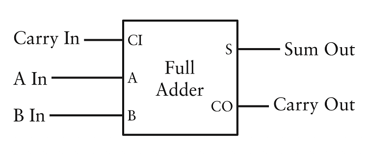 Thay vì phải vẽ đi vẽ lại sơ đồ trên ta có thể chỉ cần gọi nó là một full adder (bộ cộng đầy đủ):