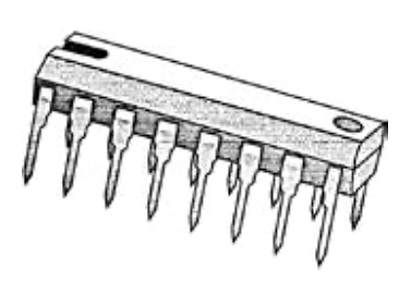Đây là chip 16 chân. Nếu bạn giữ chip sao cho phần thụt vào nằm bên trái (như trong hình), chân được đánh số từ 1 tới 16 bắt đầu ở dưới bên trái và đi vòng quanh mặt phải để kết thúc với chân 16 ở mặt trên bên trái. Chân mỗi bên cách nhau chính xác 1/10 inch.