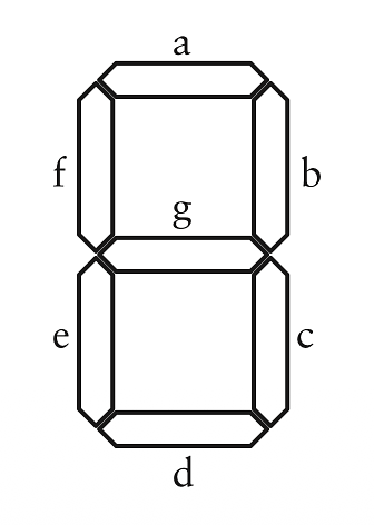 Để dễ dàng đấu dây cho màn hình hiển thị bảy thanh, mỗi thanh sáng sẽ được gán một chữ cái nhận dạng riêng:
