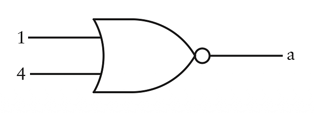 Đầu ra của cổng NOR này là 1 trừ khi các đầu vào là tín hiệu 1 hoặc 4. Đối với hai số này, thanh trên cùng sẽ không được chiếu sáng.