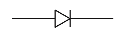 Diode chỉ cho phép dòng điện chạy theo một chiều duy nhất — trong trường hợp này, là từ trái sang phải. Đường thẳng đứng ở bên phải tượng trưng cho việc diode chặn dòng điện vốn có thể chạy ngược từ phải sang trái.