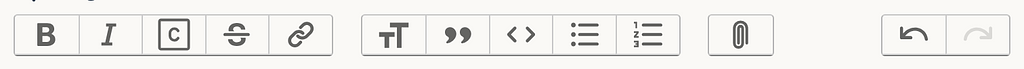Nhóm 4 nút bên trái để định dạng nội dung được chọn. 7 nút tiếp theo định dạng khối văn bản. Nút hình kẹp để thêm file. 2 nút mũi tên nằm cuối để hoàn tác qua lại. Nhưng lại thiếu mất một chức năng mình cần đó là định dạng code trên dòng. Vì là blog kĩ thuật hay viết code từa lưa mà thiếu nó thì khá cùi. Vậy nên hôm nay mình quyết định thêm chức năng này và sẵn tiện bỏ luôn 2 nút thụt lề trong nhóm thứ 2. Kết quả cuối cùng sẽ như này: